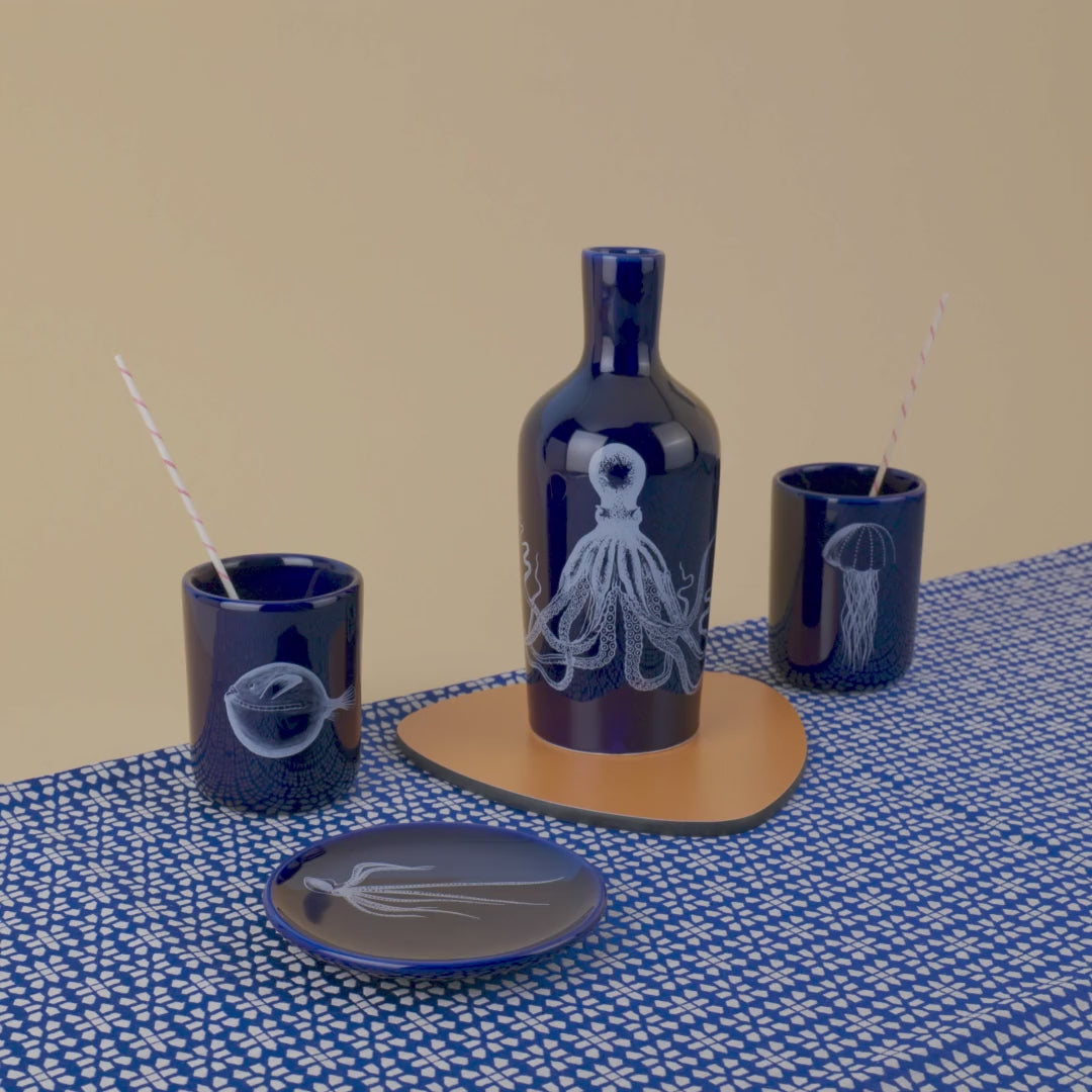 Une des plus appréciées par les chefs ! L'émail bleu de Nevers devient ici le bleu profond de l'océan dans lequel défilent poulpes, anémones et autres petits poissons.